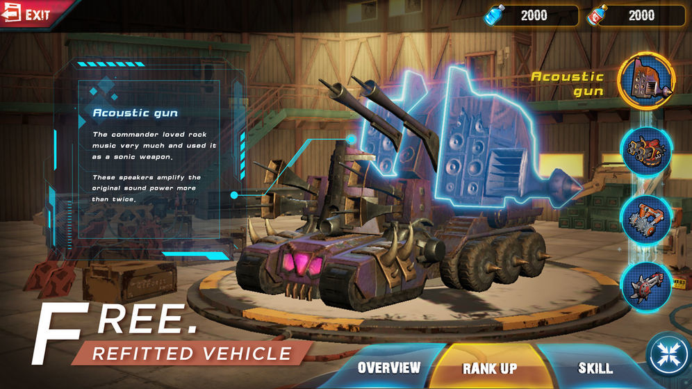 《守望奇兵》是一款融合了RPG和SLG元素的多人策略游戏,游戏中有多达二十多辆战车供玩家选择改装,还有44名英雄猎人与战车搭配出战。