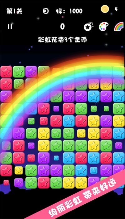 1.滑动手指,消除相邻的2个或以上的同色星星;