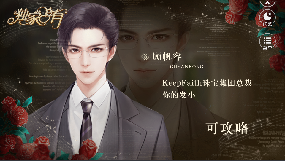 独家占有是一款非常浪漫的爱情文字剧情类游戏,游戏中玩家将作为女主,你可以攻略喜欢的男主,喜欢哪一个就攻略哪一个,给自己一个全新的人生,还有很多丰富的剧情内容等你来选择,有兴趣的用户快去下载吧。