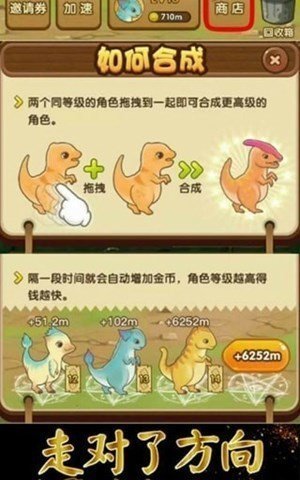 2、不断的让你的小恐龙变成更高等级,享受无尽欢快的游戏过程。