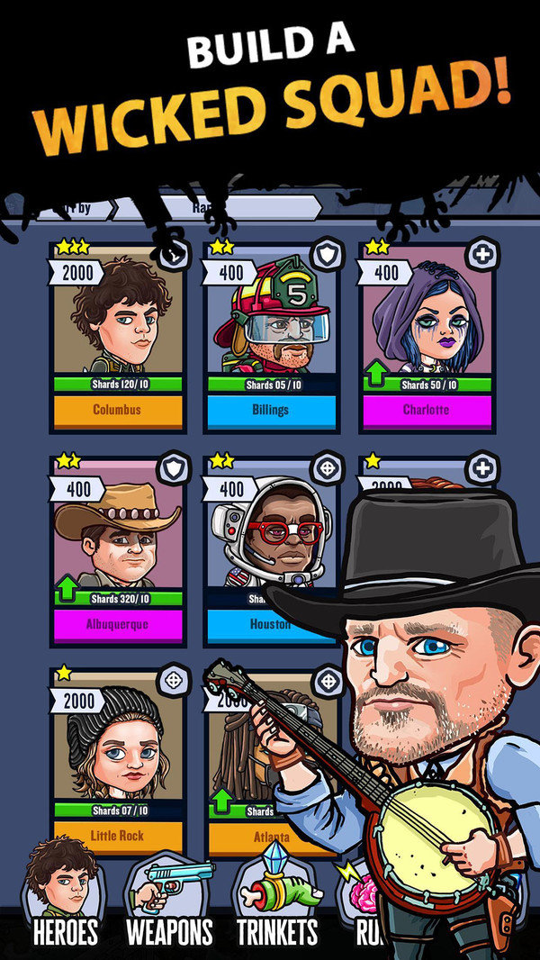 点击以激活每个英雄的独特和有趣的能力。点击以升级您的角色,武器和新技能。