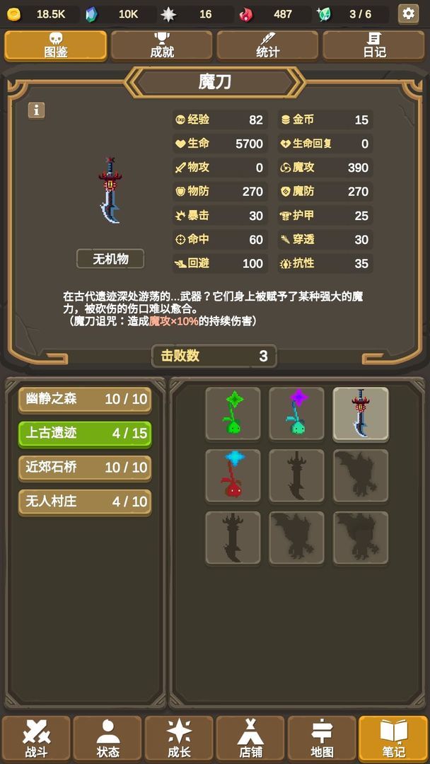无氪金!休闲养肝!一款有诚意的放置RPG!化身成为梦想调查全世界的魔物而只身一人踏遍整个大陆的有志青年(什么鬼)!