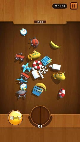 只需匹配三个相同的3D元素即可消除!通过一个关卡后,会添加新的元素。