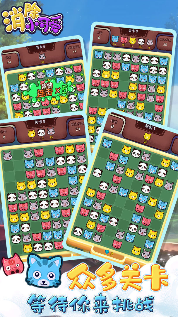 5、消除小可爱游戏关卡灵活多变,多种多样的消除障碍,有趣又不失可爱,益智与挑战并存。