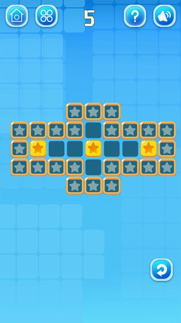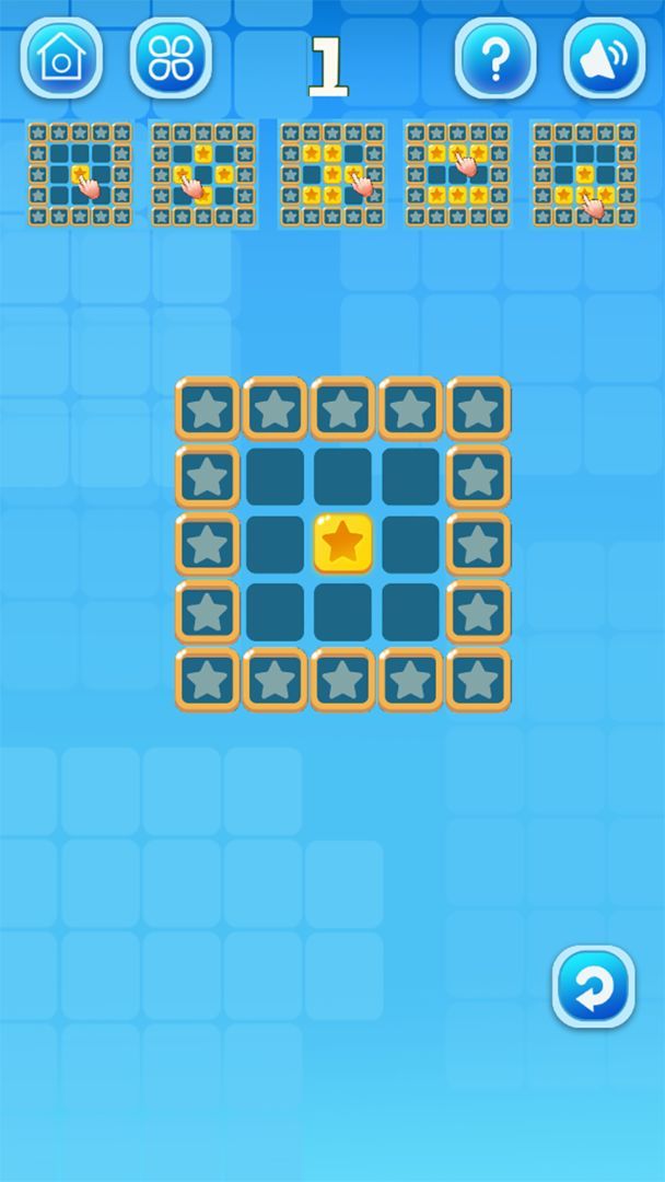 2.每一局开始的时候是有些麻烦的,因为在其中你只能点击金色的星星翻转周围的方块。