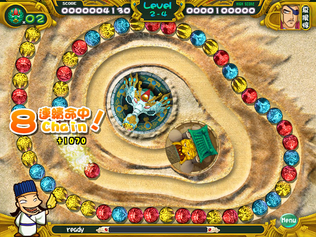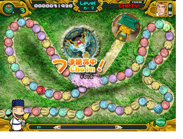 《三国连环炮》是一款由极真科技开发的趣味益智游戏,玩法类似《泡泡龙》,玩家必须操纵游戏中诸葛孔明的新发明“连环炮”,对准敌军发射,只要同色球 3 颗以上连成一线,即会自动消去。如果敌球滚入城门就算失守。