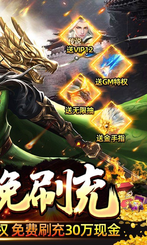 2.免费满级VIP!顶级神器等你白拿!千万战力说送就送!还有各种转盘!元宝拿不停,抽战力抽到手发软!