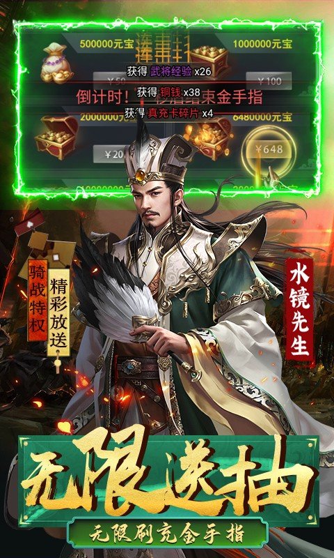 5.送极品战骑,再送神将吕布,神宠仙器领不停,助你攻城拔寨,纵横三国!