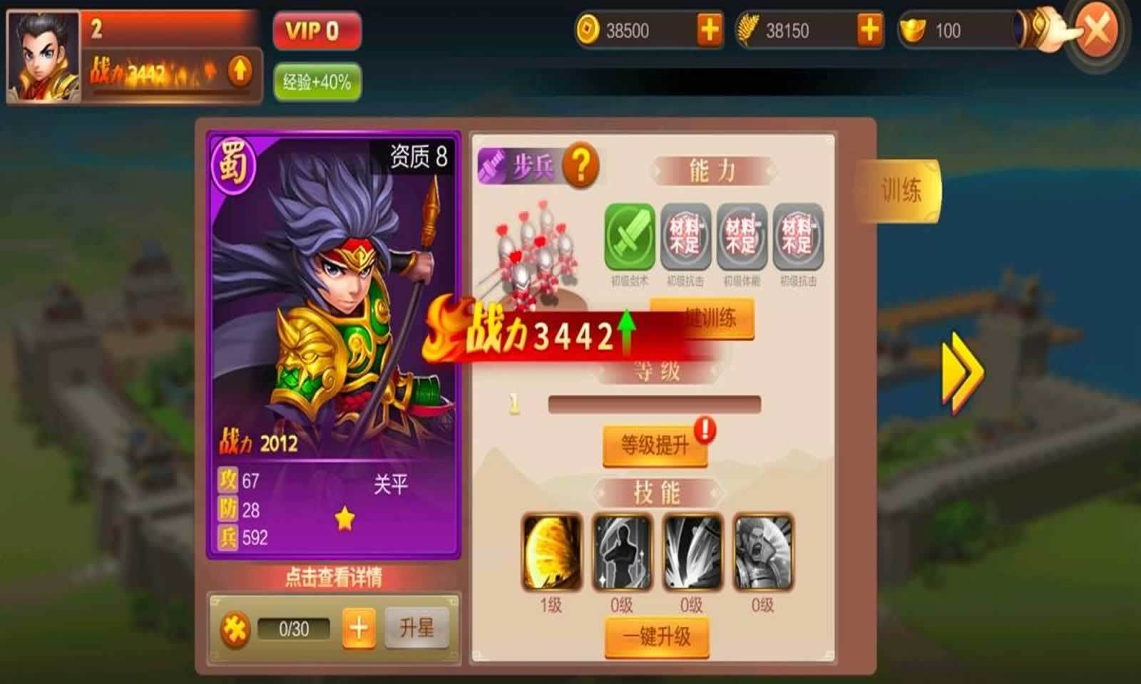 3、谋定三国,策略烧脑,排兵布阵,千种技能搭配。