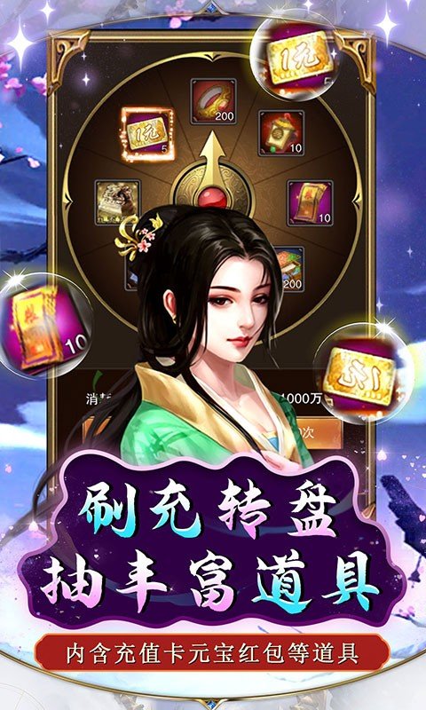2.刷充转盘内含充值卡、元宝红包、天书、指环等道具,赶紧抽起来!