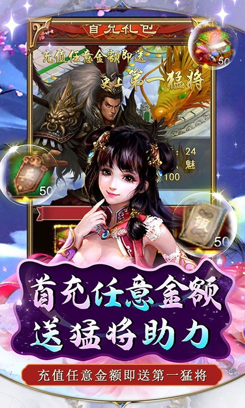 6.VIP奖励免费领,首冲任意金额拿猛将“吕布”,助你一臂之力。
