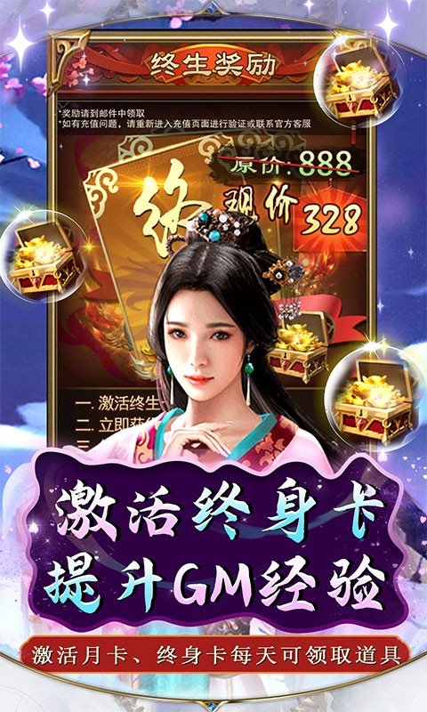 3.激活月卡、终身卡每天可领取元宝及充值卡提升GM经验