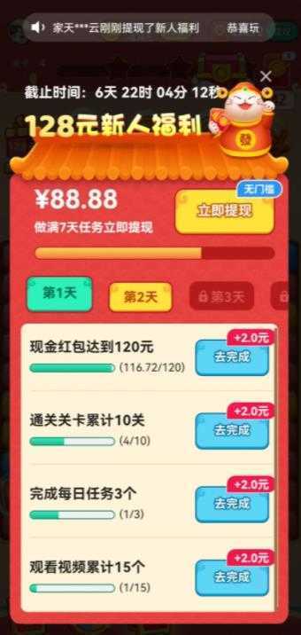 各种各样的游戏任务,可以随意尝试,不断挑战,赚取更多红包;