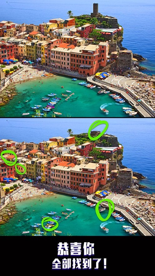 3、成功圈出所有的不同点的位置,就能够达成找茬的要求挑战过关。