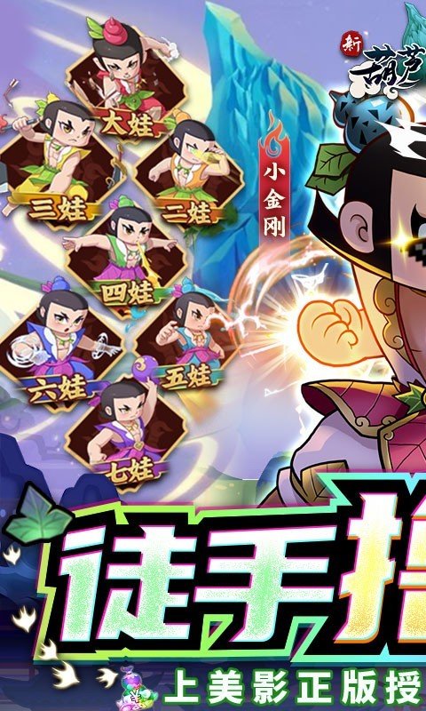 新葫芦兄弟由上海美术电影制片厂正版授权,《葫芦娃》手游原班运营团队倾力打造。他是一款传统国风休闲放置手游,深度还原动画片《葫芦兄弟》原作剧情设定,致力唤醒童年记忆,还玩家一个简单纯粹的童年,重拾儿时观影时的向往和感动。5V5公平战斗、神仙阵容策略百搭,各种不同的关卡战斗,丰富的地形选择,实时联机对战,随时开启不一样的关卡战斗之旅。齐聚葫芦山,再续儿时梦