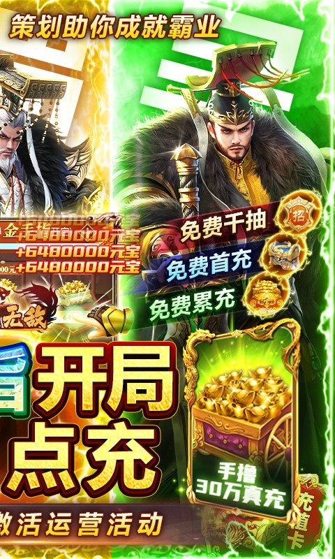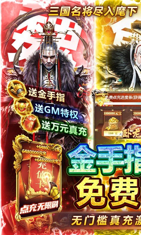 2.上线就送策划金手指,限时神权GM,千万元宝,千万铜钱,VIP10,送到最后应有尽有!