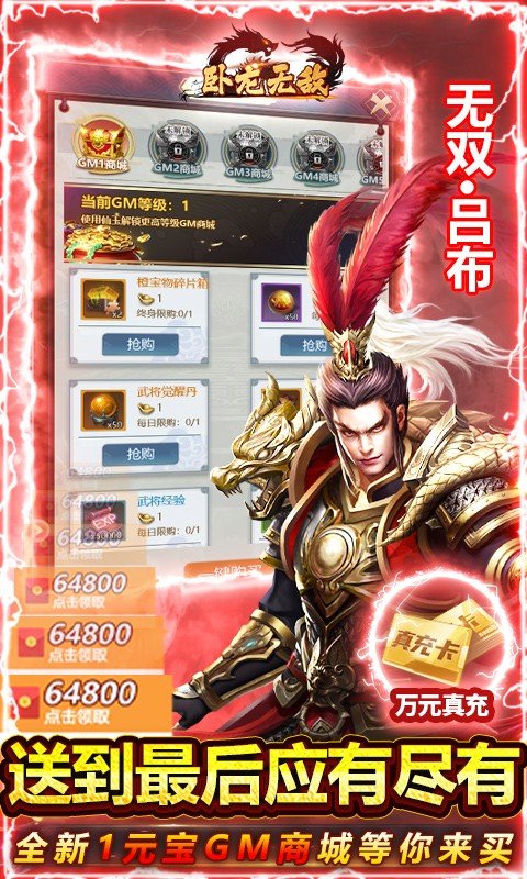 5.每天豪礼送不停!装备,武将,现金卡,仙玉免费送!更有全场1元宝的GM商城等你天天嫖,白嫖也能应有尽有!
