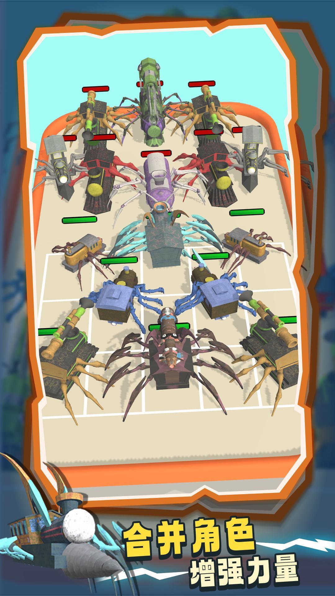 狂爆飞车是一款让人爱不释手的乐趣类合并玩法,玩家可以通过将相同的蜘蛛飞车进行合并,来获得不断得到强大的飞车,有着极高的可操作性,完成更好的多样挑战与合并。