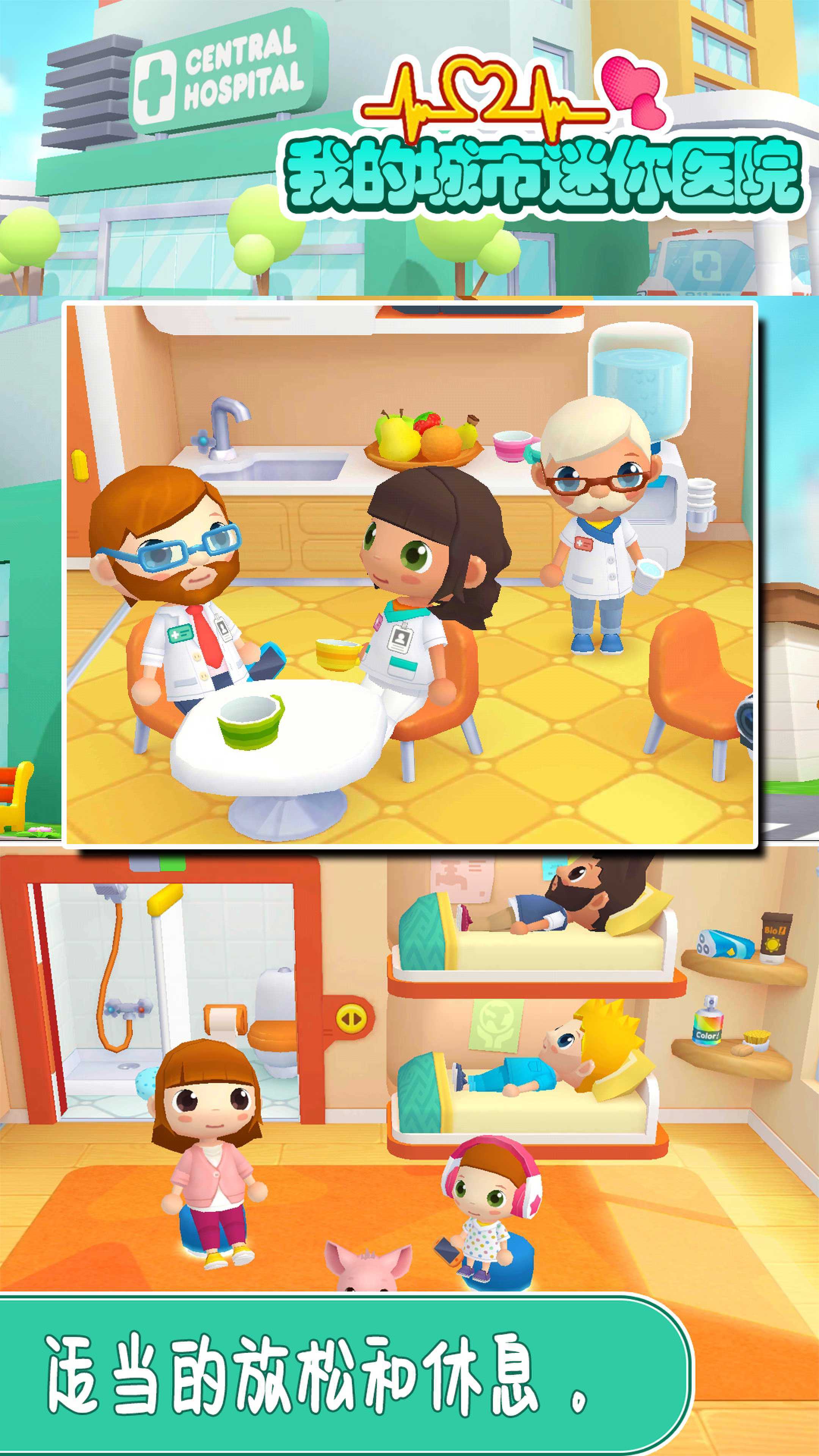 1、我的城市迷你医院中每个科室都有不同的医生。在这里,你的工作是建立自己的医院,并把它变成一个医疗保健帝国。