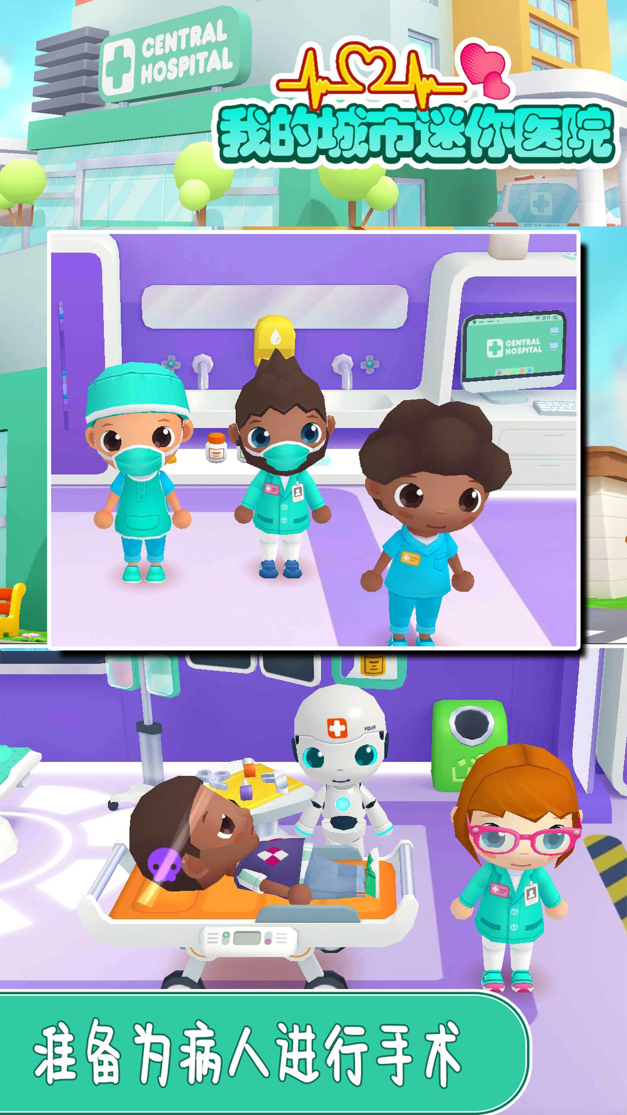 我的城市迷你医院游戏是一款趣味模拟医生的经营游戏,玩家作为这所儿童医院的院长兼知名医生,凭借高超的医术,让患者早日康复,从而完成任务,获得奖励,解锁新的医疗板块,成就一所知名医院。