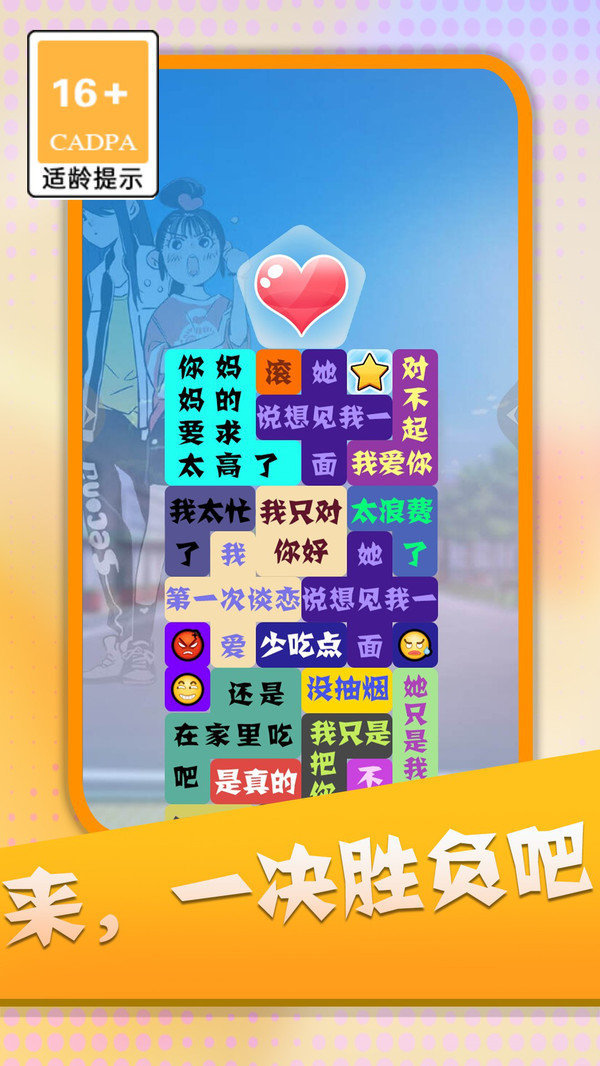 2、消灭渣男语录畅快消除,清空所有的方块,并能由此获取解压体验。