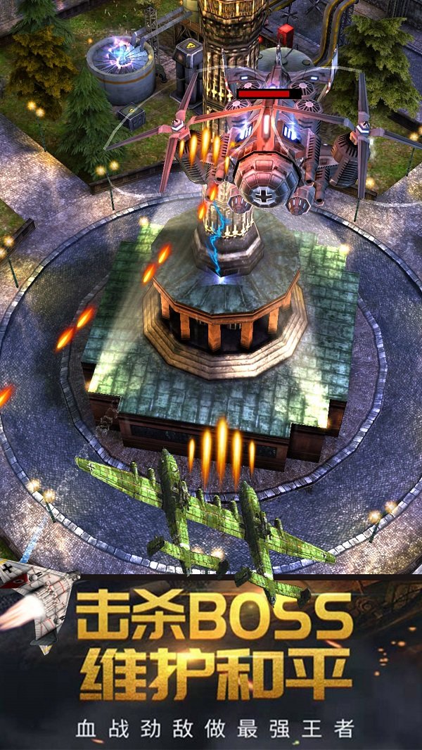 游戏中提供了多种不同的飞机,各种强大的武器和防护装备,让你的空军不断壮大,提高实力。