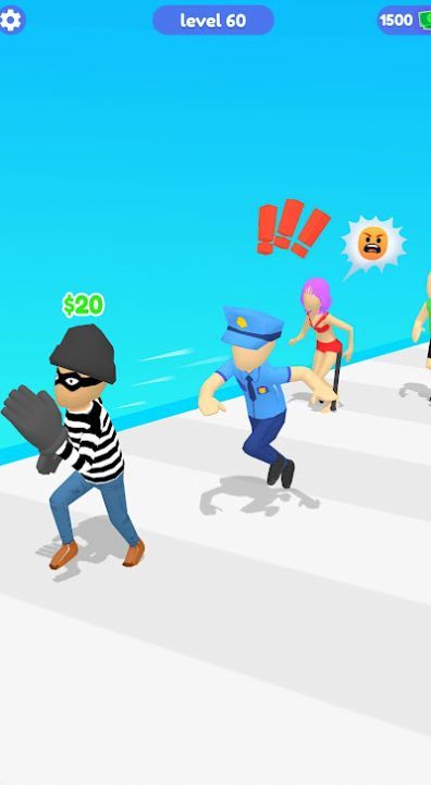 抢钱奔跑是一款经典的跑酷闯关游戏,在游戏中,玩家需要扮演一名犯罪分子,穿梭在城市的大街小巷,一边追击警察,一边抢劫钞票贵重物品,玩家需要敏捷的操作技巧,通过游戏道具也可以提升角色的能力,让游戏更有体验感。