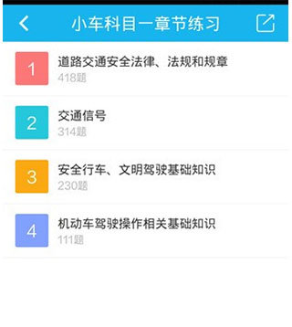 2、可以看到小车科目一章节练习中有四部分内容。一节一节的去练习,在练习过程中如果发现自己做错了,要及时看答案解析,做到心中有数。这些练习的好处是,基本上所有考题都会从这四节当中初选出。而且做错的题会自动存入我的错题的题库里。