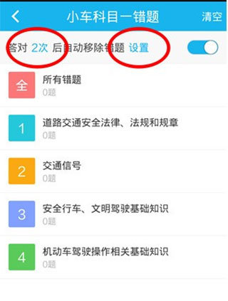 5、在我的错题栏目上可以设置答对几次后,题目自动移除我的错题库。一般设置3次为好。3次如果答对,基本上在脑海中已经形成了很深刻的印象。提醒大家的是,错题库是关键,一定要仔细对待。