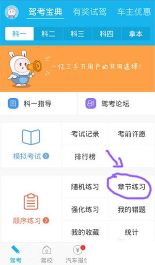 1、打开驾考宝典软件后,可以看到如下栏目。注意先选择科目一顺序练习里面的章节练习项。