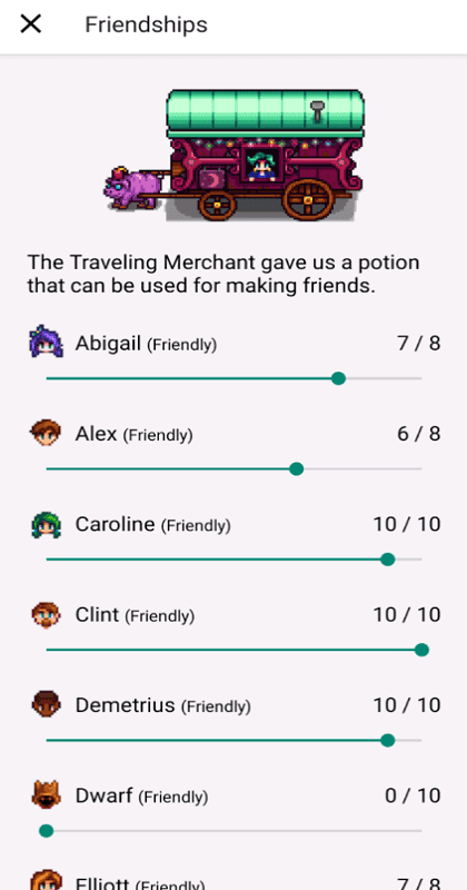 7、调整友谊,工具,运气,战斗和技能水平