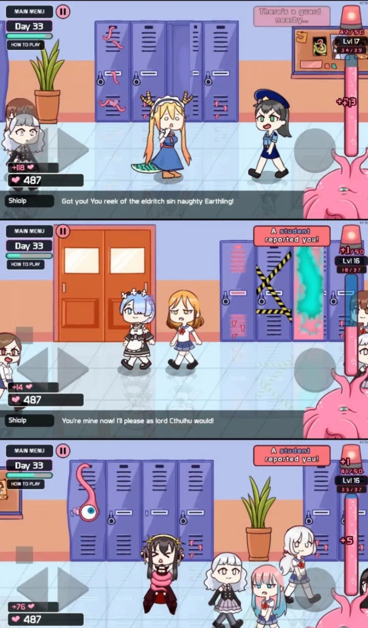 每当触手怪物成功抓住一个女孩玩家,它的力量就会增加。你抓的女孩越多,得到的奖励就越多。