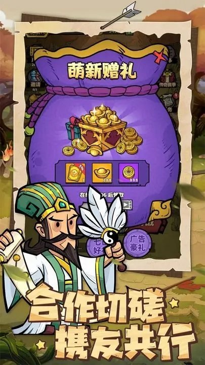 3、创新的社交系统,玩家可以和其他玩家进行交互,一起探险、闯关、共同建设自己的三国王国。