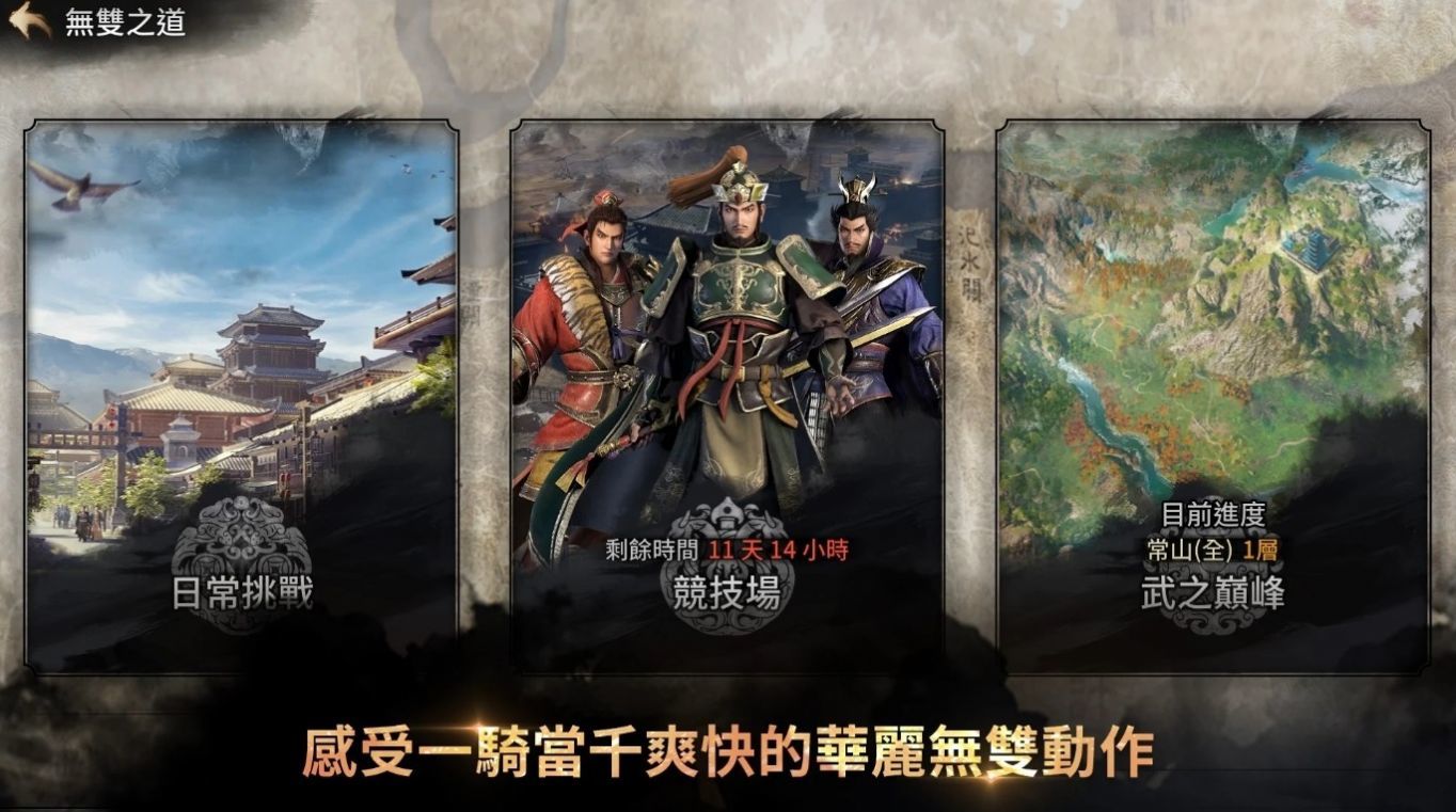 1、真三国无双M根据三国历史中的各种战役和传说,设置各种章节和关卡;