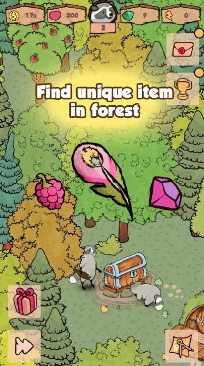 1、探索森林,寻找隐藏的宝藏和秘密通道,你将会发现更多珍宝;