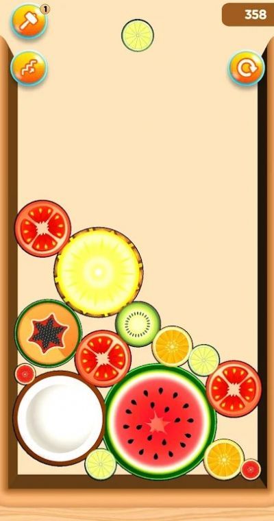 2、扩大拼图范围,争取合并完成一个完整的水果;