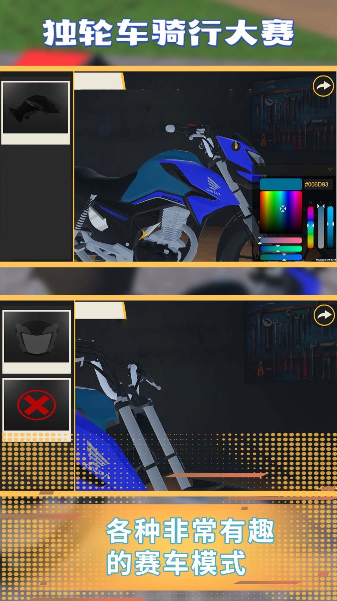 独轮车骑行大赛是一款采用了3D引擎精心制作的赛车竞速游戏,每个玩家都可以选择一辆喜欢的赛车开启比赛,游戏包含了超多有趣的赛车模式,你可以一个个的尝试和竞速,在一次次的驾驶和竞速中学会更多的驾驶技术,感兴趣的玩家可以下载试试看哦。