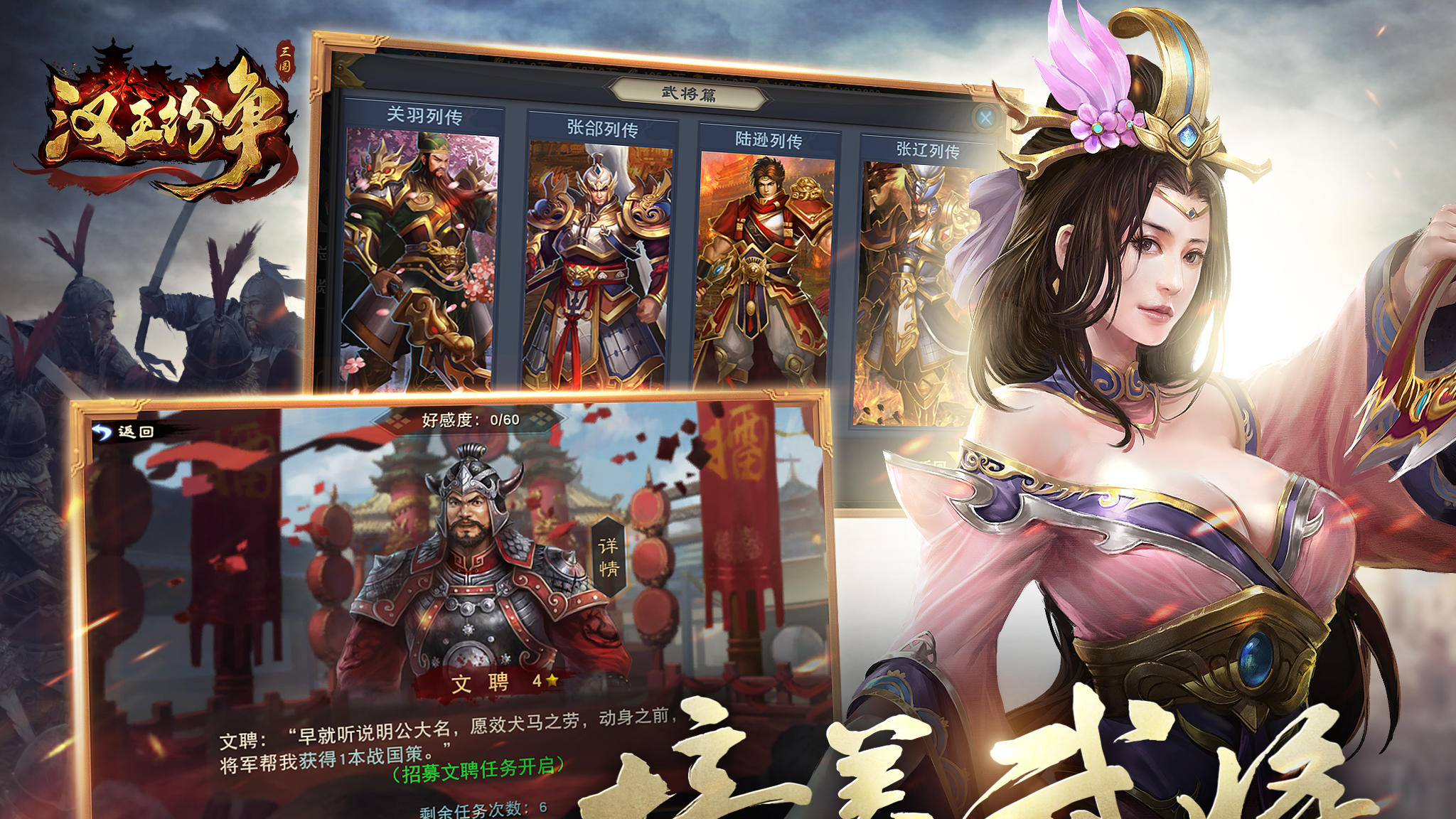 汉王纷争是一款以三国作为故事背景展开的大型战争类策略游戏,游戏拥有最真实的战争玩法,最丰富精致的游戏画面,完美还原历史的武将,性格,战斗玩法以及形象,深受玩家的喜爱,组建强大的军团去进行战斗,喜欢的玩家快来下载体验吧!