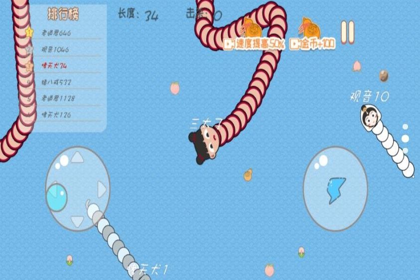 2、可爱的蛇头,让你可以很好的区分自己的蛇蛇和对手的蛇蛇。