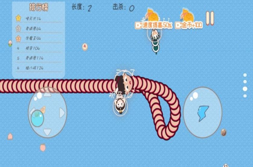 3、操作界面上可以很清楚的知道自己的长度和击杀敌人的数量。